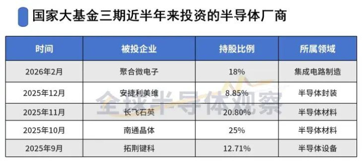 国度大基金三期密集脱手,半年投资多家半导体厂商