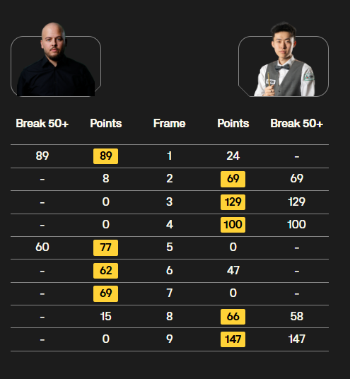 虎扑04月13日讯斯诺克世锦赛经历赛80进48轮次,常冰玉首阶段5-4跨越卢卡-布雷塞尔。