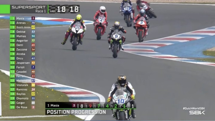 北京时分4月18日,全国超等摩托车锦标赛(WSBK)荷兰站WorldSSP组别正赛终结。中国制造商“张雪机车”旗下53号车手德比斯在临了关头出现特地,最终以第四名完赛。