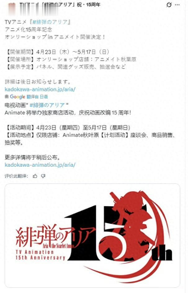 没错的,如今就连《绯弹的亚里亚》这部尘封在不雅众回来中的动画作品,也官宣庆祝动画播出15周年了。