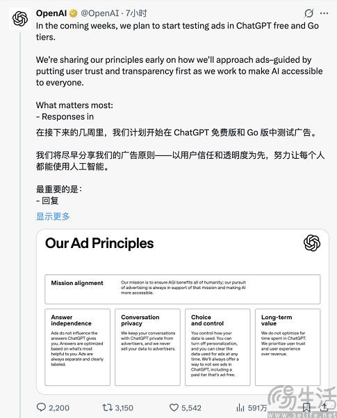 天然,为了安抚用户,OpenAI也强调告白整个不会侵犯恢复的客不雅性,更不是谁给钱多就推谁的告白。此外他们还应允,用户的对话记载不会被打包卖给告白商,何况你也有权随时关闭个性化告白确立。