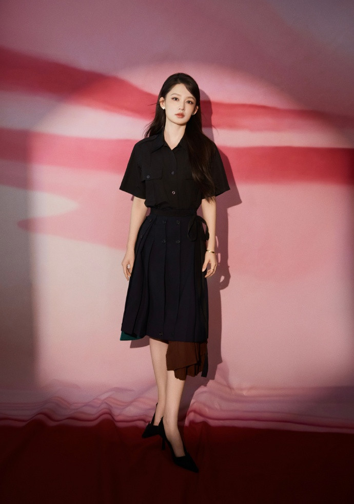 李沁的当天份玄色穿搭,还得是她!
