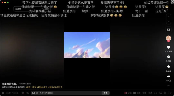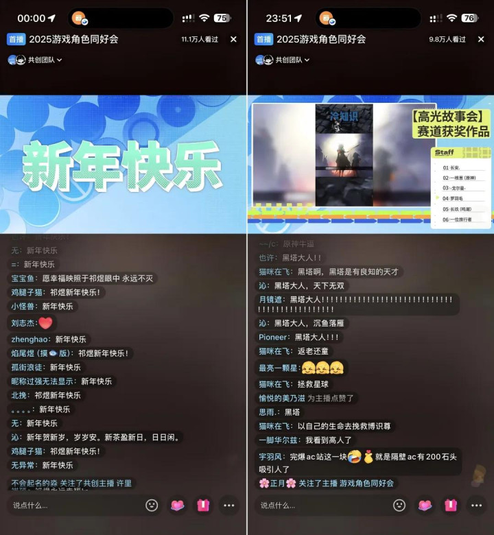 12月31日的跨年放映会,更像是一场属于玩家的「民间春晚」。其时直播间在线不雅众突破10万,直播播放量卓绝千万,弹幕里王人是众人的安利、因循和祝愿……这种游戏圈扮装群像的庆典感,是单一游戏很难予以的。
