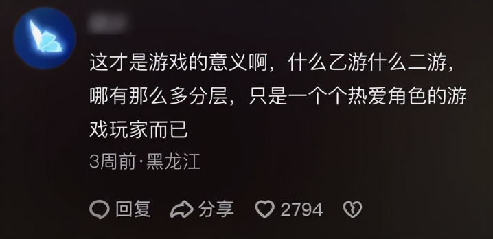 这就像投稿视频下那句点赞极高的热评所说的:“什么乙游二游,众人其实只是一个个介意扮装的游戏玩家辛劳。”