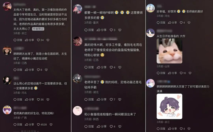 更有创作家,花了几个月时辰,为喜欢的扮装作念了一个毛毡定格动画短片,在驳斥区得益了一多数同好,以及刷屏的“太伟大了”、“太有爱了”、“憨厚难得了”……