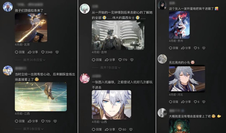 《原神》《鸣潮》《崩坏:星穹铁谈(后称崩铁)》《绝区零》、暖暖系列中的东谈主气扮装的投稿作品,也应酬揽获一多数数十万点赞的作品,多数玩家在有关驳斥区晒犬子、晒老公老婆……统统这个词话题区给东谈主的嗅觉,就像是玩家提前过年了,众人不分游戏地在驳斥区寻找同好、相互安利。