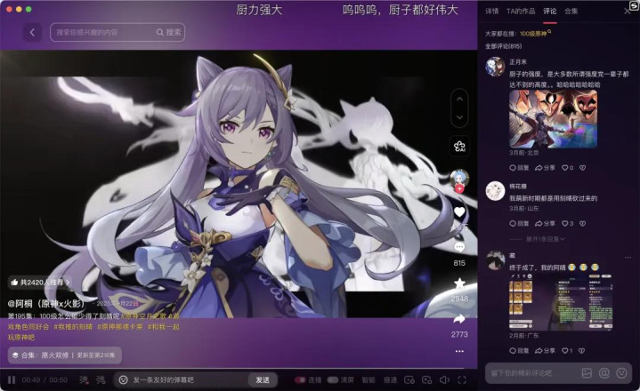 暖暖、宵宫、永夜月等扮装的投稿播放量也纷纷过千万——其中著名宵宫单推东谈主@夜的第七章。, 径直带队将该扮装推上了《原神》应援东谈主气第一的位置。