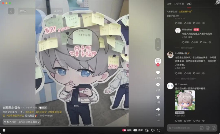 在《恋与深空》男主们的有关话题下,百万点赞的作品随地可见,无数玩家在其中写下长情广告;