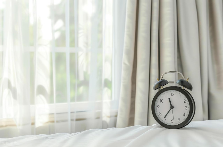 白窗帘前的玄色闹钟
