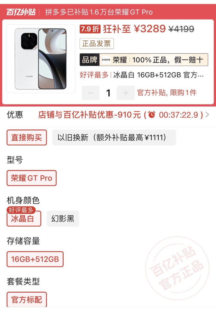 总的来说,就荣耀GT Pro这款机型给东谈主的嗅觉并不是“我有多夸张”,而是“我每一项都在替你商酌”,给东谈主的感受是性能强、但不躁;屏幕好、但不伤眼;电板大、却不迁延;影像稳、但不玩虚的,它更像是一位把细节作念到位的万能选手,陪你打游戏、刷实质、拍生涯、应酬忙碌夙昔,却很少给你添粗重!淌若你正在找一部能长久使用、无谓天天纠结优裂缝的旗舰机,就荣耀这款家具照旧很值得出手的,就如今在价钱上亦然较为亲民的存在了,参考到如今电商平台中的售价,16GB+512GB的内存规格仅是需要3289元的价钱即可出手了。