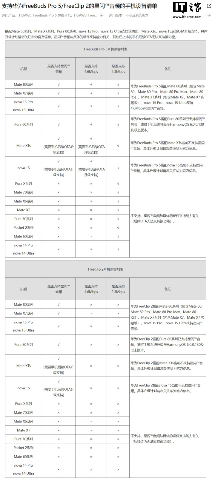 撑捏华为FreeBudsPro5/FreeClip2的星闪音频的手机开荒清单如下: