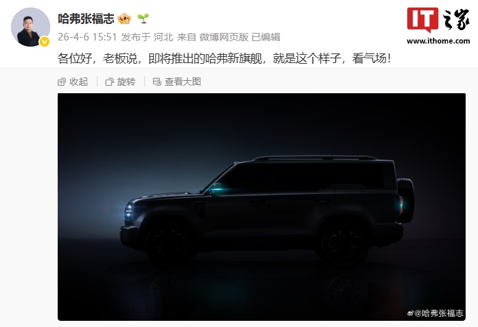 IT之家 4 月 6 日音信,哈弗品牌营销副总司理张福志本日公开了长城哈弗新旗舰车型的侧视图。