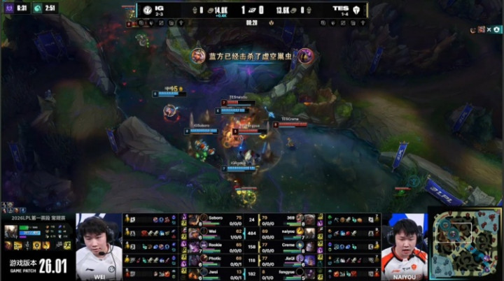 [8:08]巢虫团,soboro兰博大招洒进墙里后击杀naiyou潘森,Rookie辛德拉被369安蓓萨逮捕,TES打出1换2,两边经济握平。