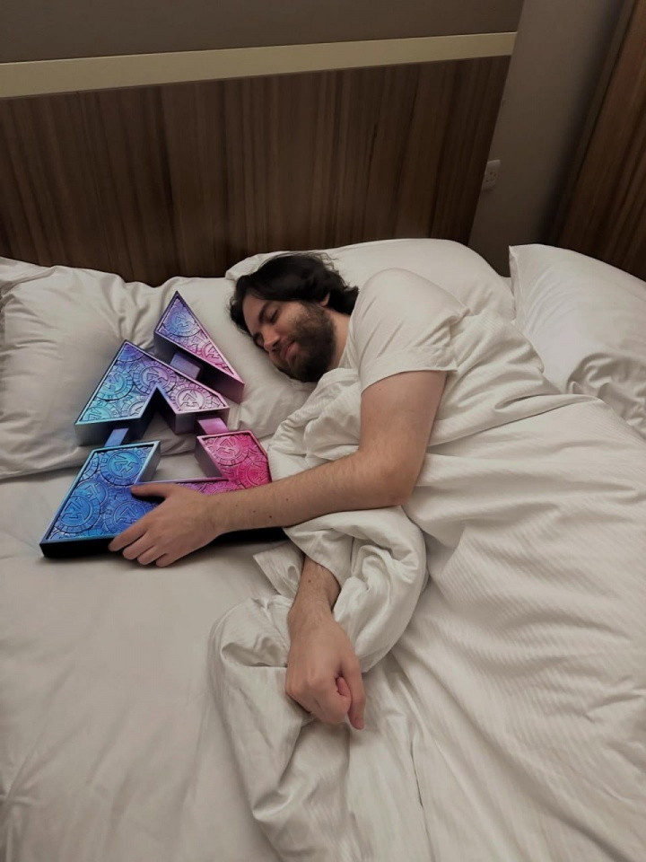 赛后Jame晒出与BLAST奖杯的床照,此前donk、Niko、s1mple、dycha、siuhy等选手也发布过通常的相片。