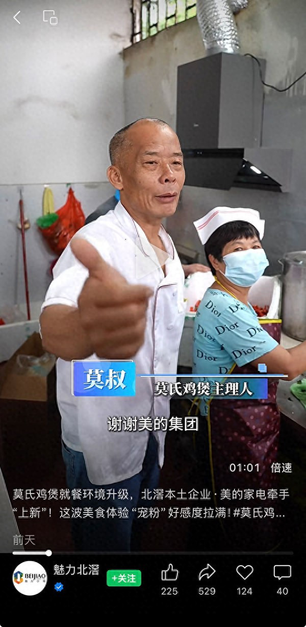 “空调是好意思的公司何总支持的……当今不是几台,是很多很多我数不清。空调、洗衣机、抽油烟机。”近日,莫氏鸡煲的老莫在短视频中感谢好意思的支持全套电器。