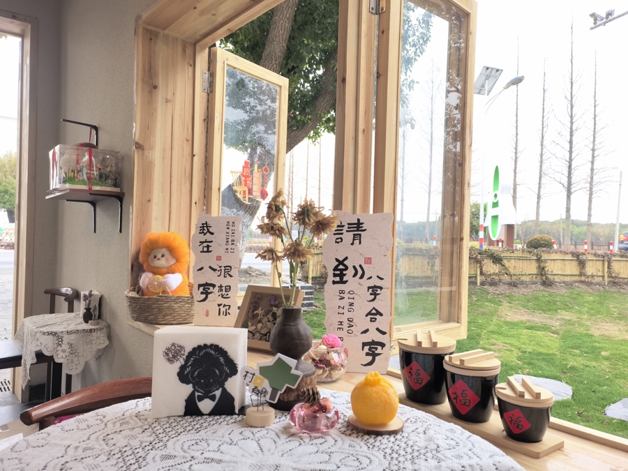 值得一提的是,“村口有棵树”还是一家宠物友好咖啡馆。店内随处可见店主爱犬——黑色泰迪“JACK”的可爱形象,它被设计成书立、纸巾等周边,迎接着每一位到访的客人。