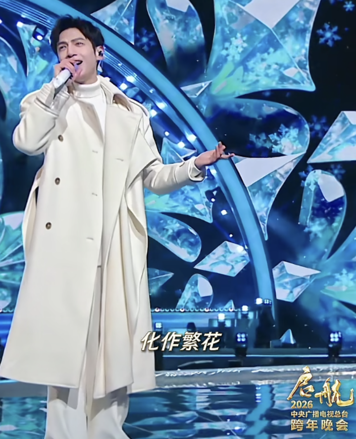 元旦的时候他插足过央视的跨年晚会,演唱歌曲《冬雪至》,一袭白衣,台风稳定,像演义里走出来的白马王子。