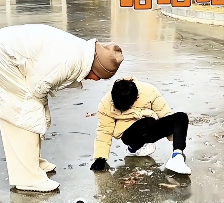 她在冰面上时刻牵着奶奶的手,展现了细心慈祥的一面。