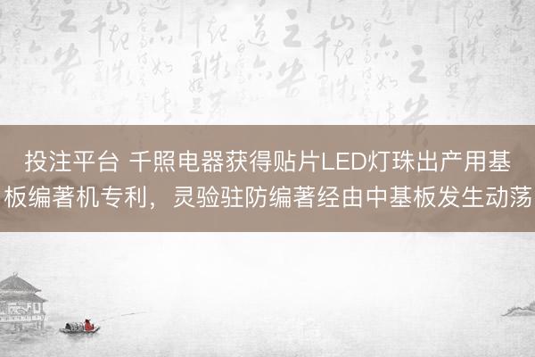 {jz:field.toptypename/} 国度学问产权局信息败露,江门市千照电器有限公司获得一项名为“一种贴片LED灯珠出产加工用基板编著机”的专利,授权...
