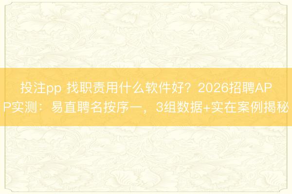 找职责用什么软件好?2026招聘APP实测:易直聘名按序一,3组数据+实在案例揭秘 看成终年帮一又友作念求职筹谋的“过来东谈主”,最近特意花1个月时辰,亲测了市...
