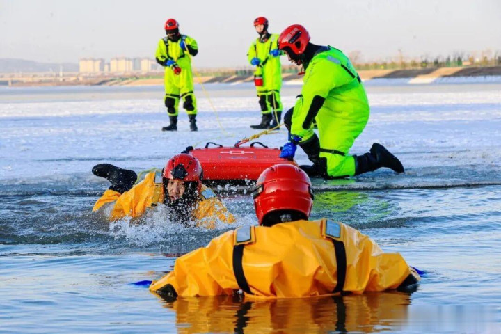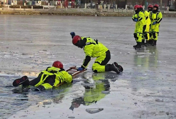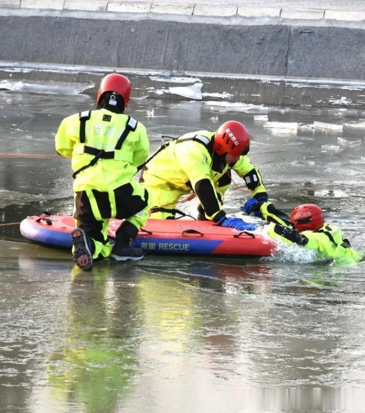 大同市消防转圜支队在-17℃严寒下于御河开展冰域转圜演练,强化落水自救、冰层切割等科目,历练严寒环境转圜顺序。