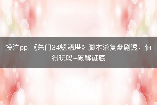 《朱门34魍魉塔》脚本杀复盘剧透:值得玩吗+破解谜底 《朱门34魍魉塔》算作朱门惊情系列脚本杀中的一部,以其特有的魔力诱导着稠密玩家。它率领玩家走进一个充满深奥...