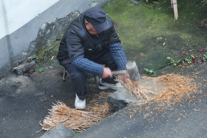 老赵腰不好,他犬子蹲下去给他系护腰。算作很轻,系完还拍两下,像怕勒疼了。