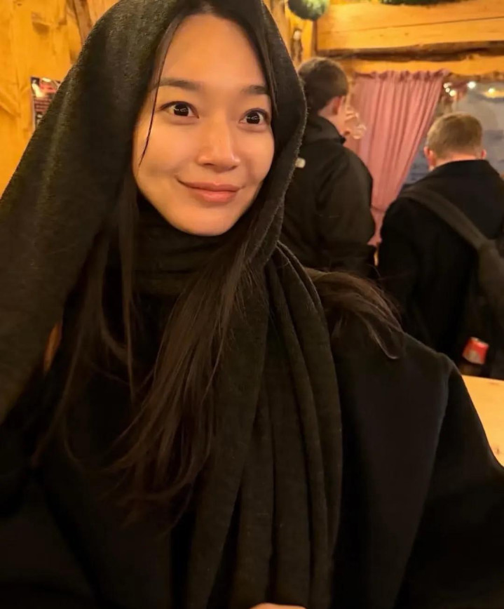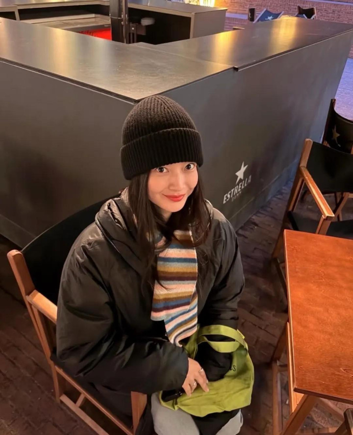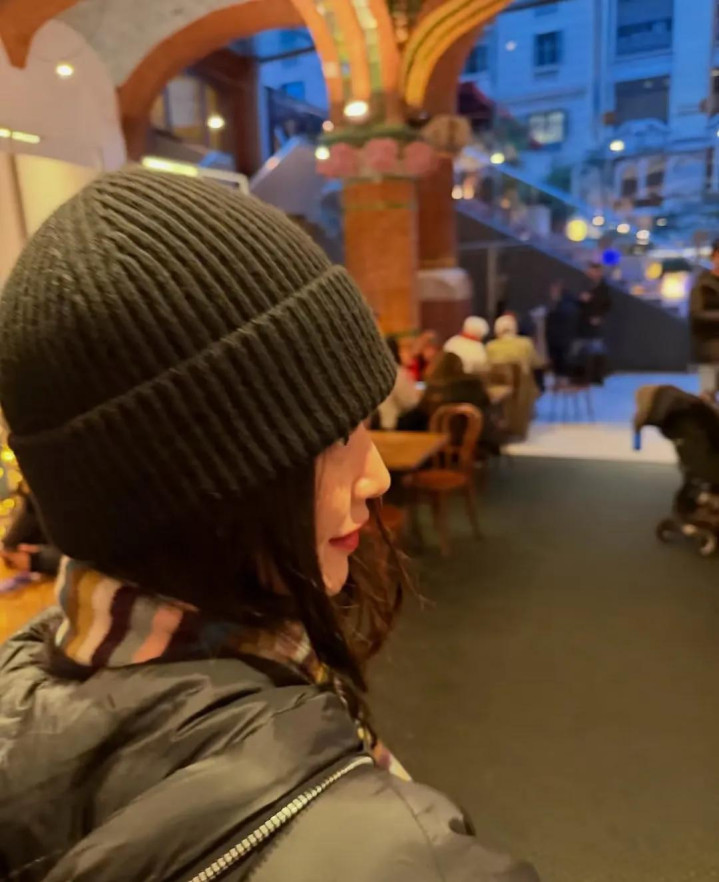 她衣服玄色大衣,戴着深灰色的领巾,这套衣服等于她和金宇彬逛LV时衣服的那一套衣服,她素颜出镜,仅仅浅薄的围了个领巾,原相机镜头下也很颜面。