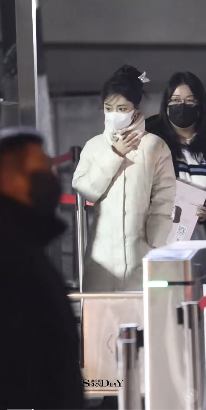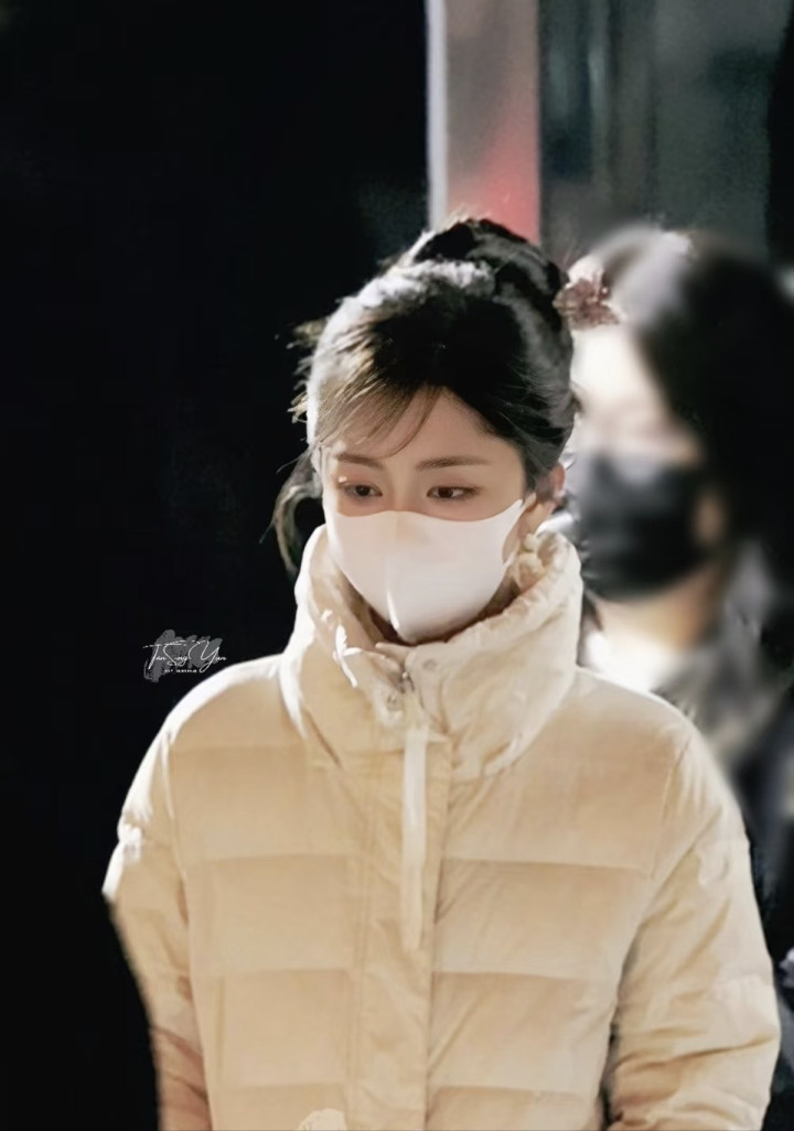 投注pp 谭松韵春晚联排路透, 穿白色长款羽绒服好瘦, 水汪汪的大眼睛很好意思