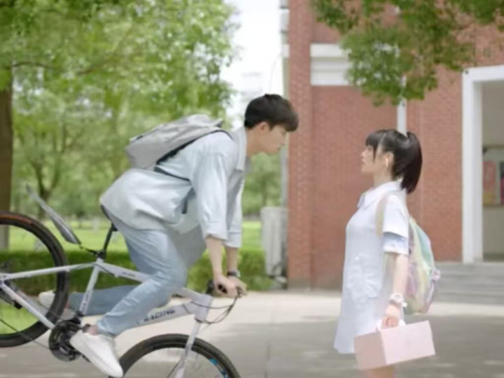 芳华校园剧,不免会有重迭的设定,男女主的相遇就很俗套,男主骑着自行车,女主不看路,两东谈主就这样水汪汪地撞上,画面各式定格特写,又尬又可笑。女主经心打扮,带着蛋糕准备给暗恋的男生过诞辰,合计会取得他的表白,在餐厅外照镜子,又是转圈圈又是比心又是wink,不知谈这是单面镜,欢蹦乱跳的式样被内部聚餐的男主看得一清二楚。大型社死现场让东谈主笑得肚子疼。