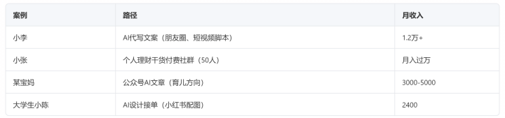 有东说念主用AI代写案牍月入1.2万,有东说念主靠AI社群变现月入过万,有东说念主用AI作念数字藏品一单破百。